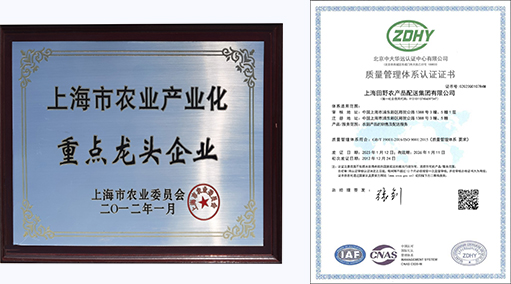 荣获“上海市农业产业化重点龙头企业”
