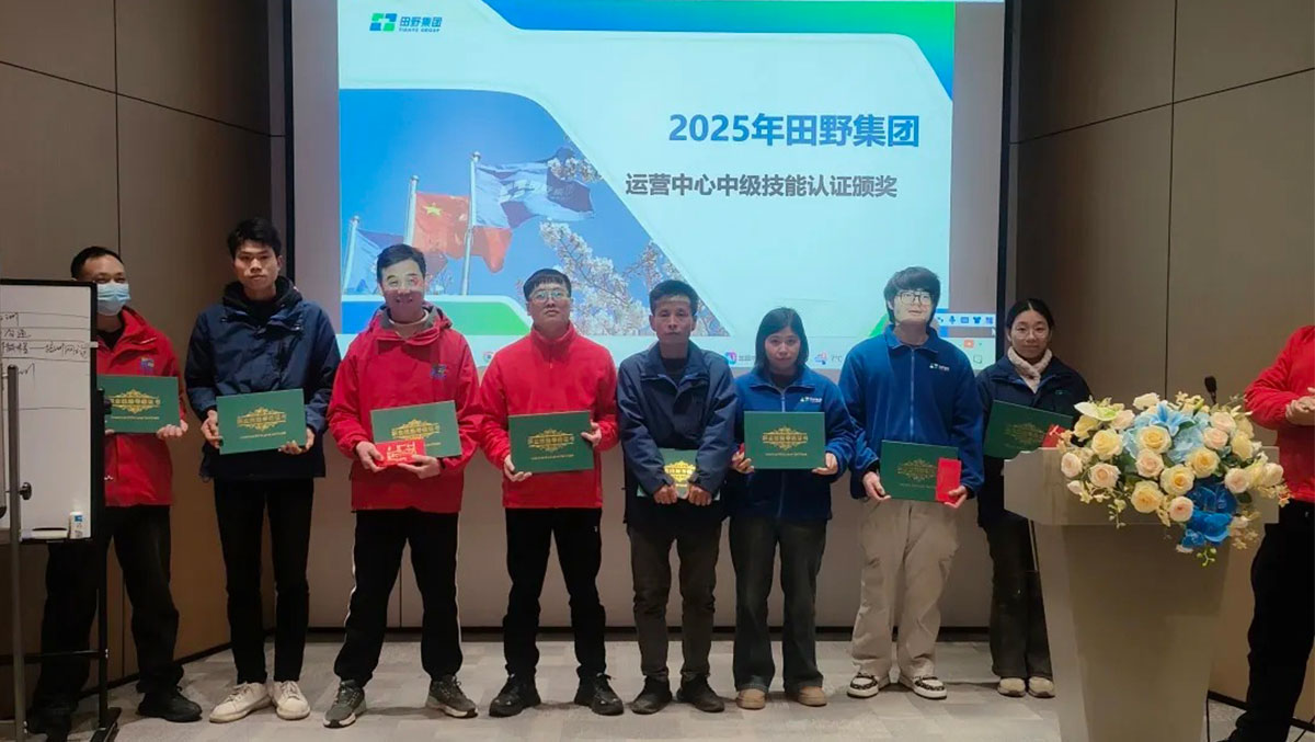 12月24日晚,田野集团会议室灯火通明,气氛热烈。这里正在举行一场特别的仪式——田野集团首批运营中心技能认证颁奖典礼。来自仓储部、配送部和加工部的数十名员工,身着整齐工装,满怀激动地从公司领导手中接过象征专业能力的中级技能认证证书,并领取了专项技能激励奖金。